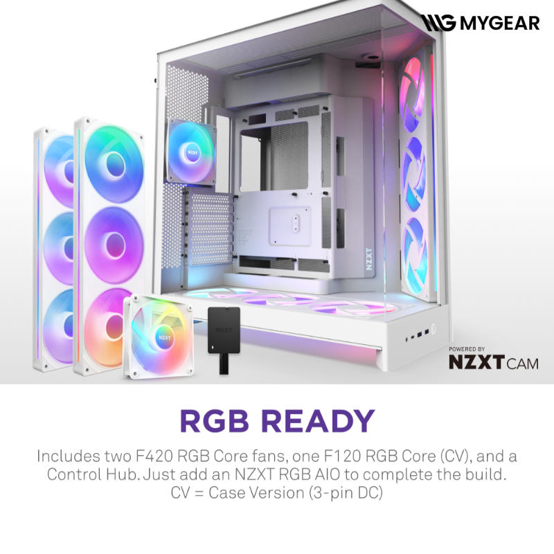 MYGEAR cung cấp đầy đủ linh kiện đi kèm như quạt RGB, tản nhiệt khí, PSU, card màn hình, RAM RGB, giúp bạn dễ dàng hoàn thiện một NZXT H9 Flow RGB Plus White đồng bộ, thẩm mỹ và hiệu suất cao.