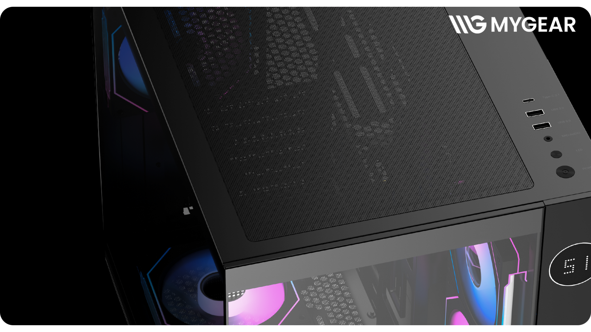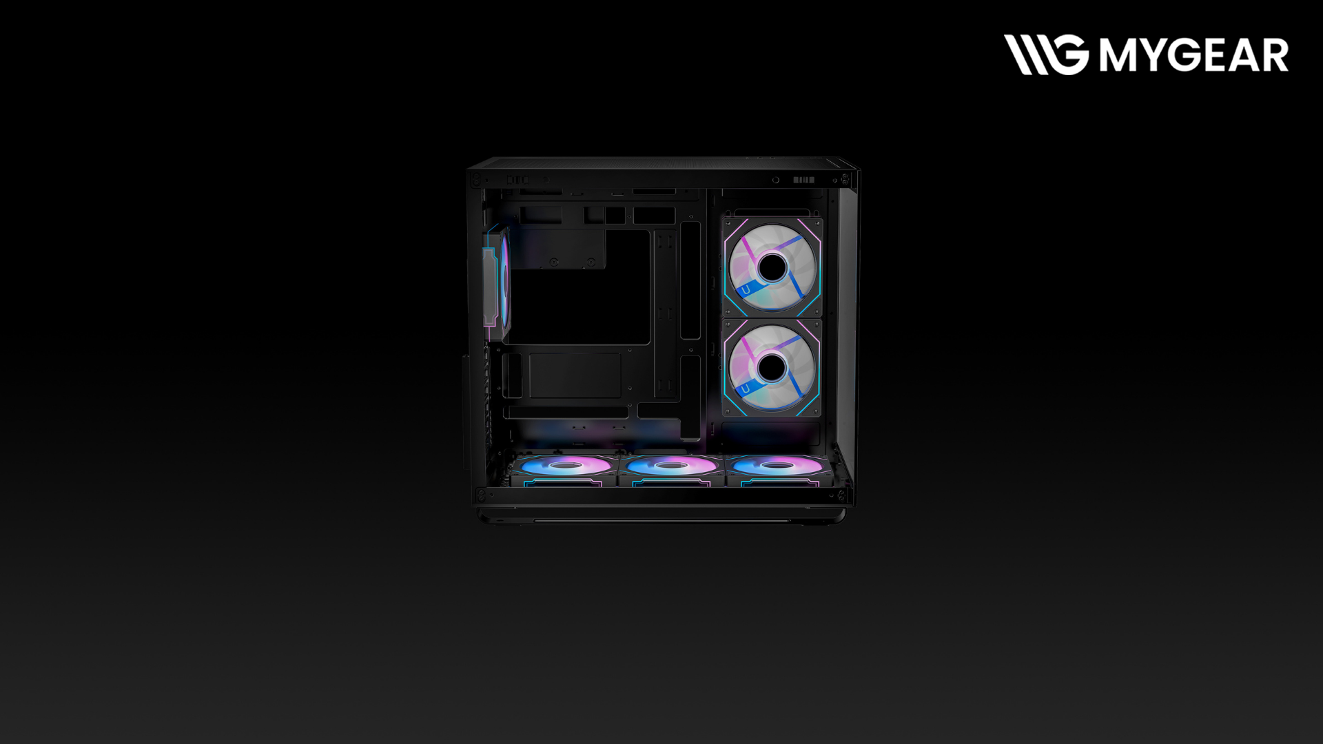 Với khả năng lắp đặt 6 quạt 120 mm ARGB và hỗ trợ nhiều vị trí lắp thêm quạt/radiator, case cho phép người dùng tạo hiệu ứng ánh sáng rực rỡ, đồng bộ với các linh kiện ARGB khác như RAM, card màn hình, AIO. Cổng kết nối USB Type-C 3.1 Gen2 và HD Audio giúp tận dụng tối đa tiện ích cho dàn máy hiện đại.