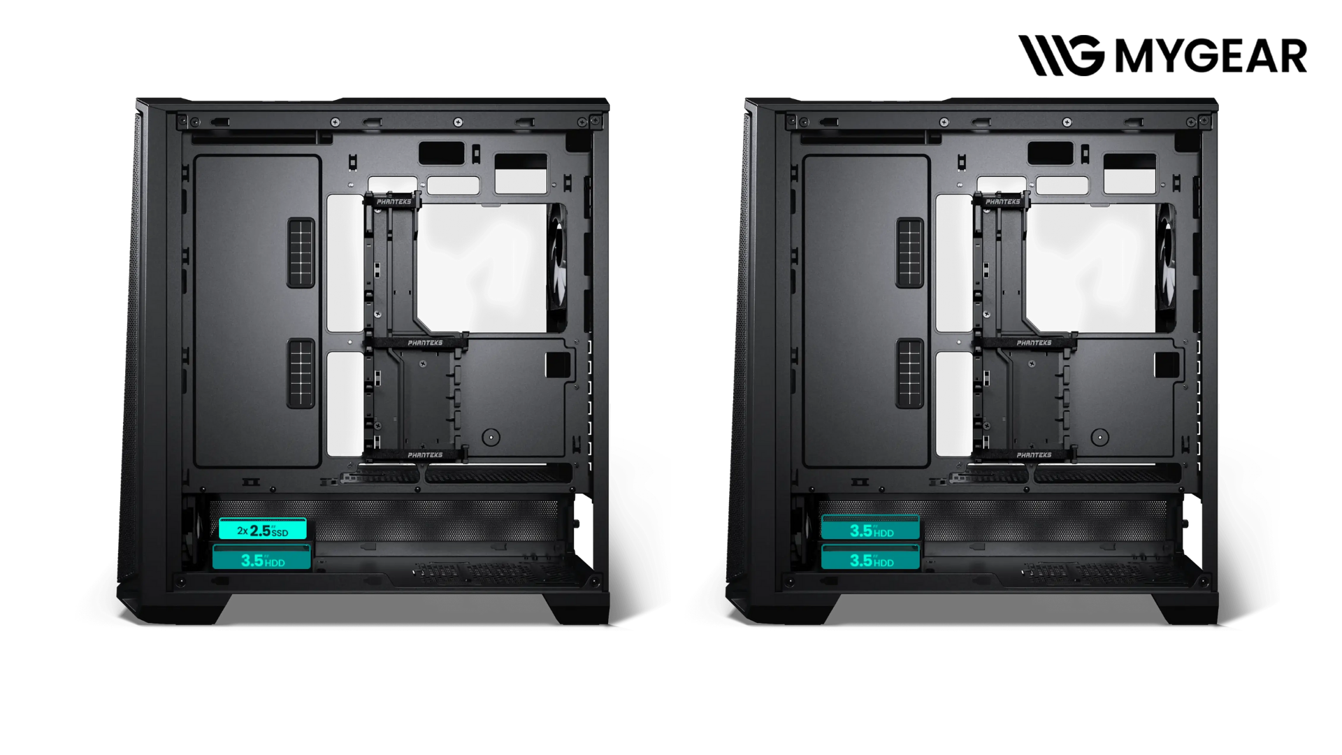 Với thiết kế khoa học, vỏ case Phanteks G400A cho phép đi dây gọn gàng, dễ dàng bảo trì. Các khay ổ cứng gồm 2 × 3.5 inch và 3 × 2.5 inch, giúp bố trí linh kiện linh hoạt, tối ưu không gian bên trong, đồng thời giữ luồng gió ổn định.