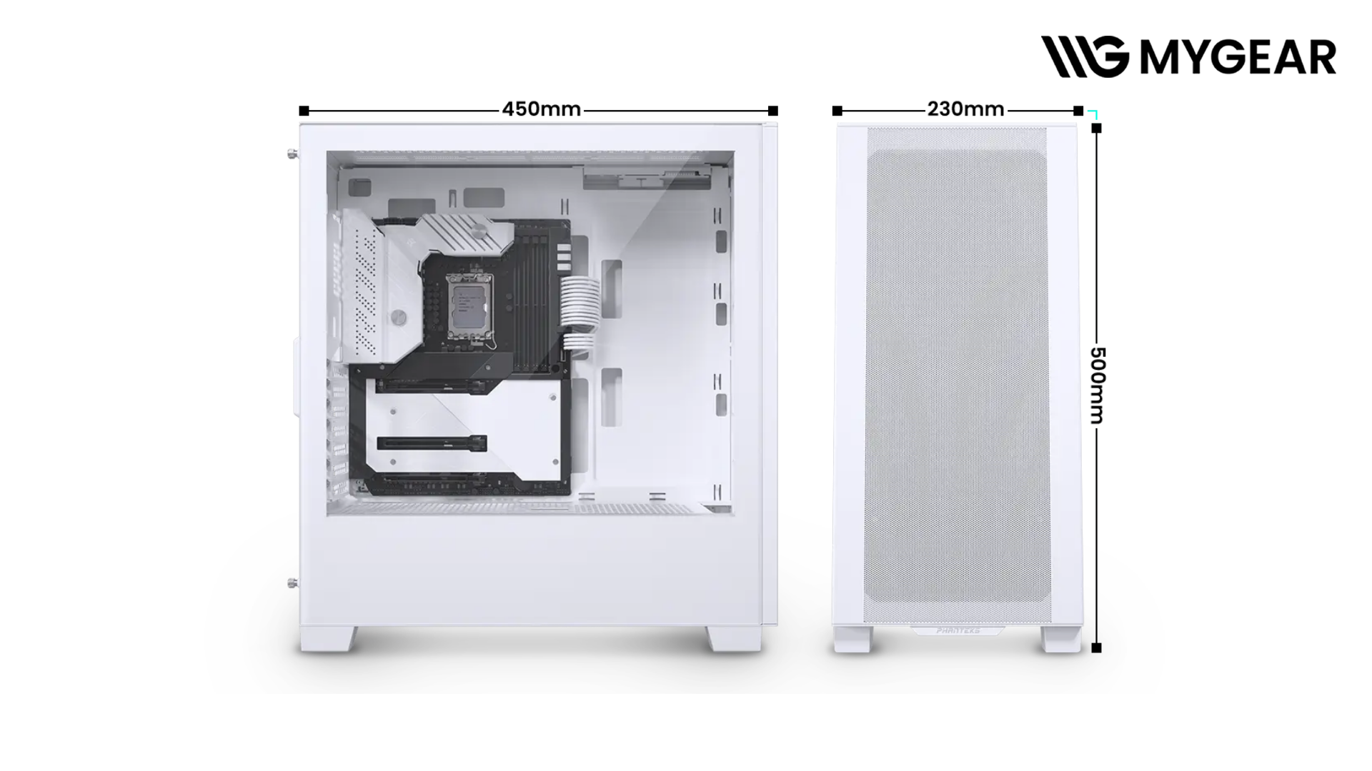 Vỏ case Phanteks XT Pro Ultra White thuộc phân khúc Mid Tower nhưng sở hữu không gian nội thất rộng rãi, tối ưu cho việc lắp đặt linh kiện lớn. Với kích thước phù hợp, bạn có thể build các hệ thống sử dụng GPU khủng, PSU công suất cao hoặc tản nhiệt nước AIO/cascade mà không gặp giới hạn về không gian.