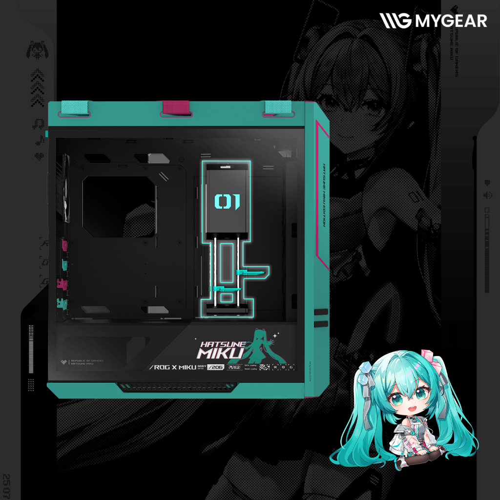 Khi kết hợp cùng các linh kiện đang được MYGEAR phân phối như mainboard ROG EATX, CPU Intel Core i9 hoặc CPU AMD Ryzen 9, tản nhiệt nước ROG Ryuo Miku, RAM DDR5 dung lượng lớn và card đồ họa RTX cao cấp, ASUS ROG Miku case tạo nên một bộ PC vừa mạnh mẽ vừa mang giá trị thẩm mỹ và sưu tầm cao.