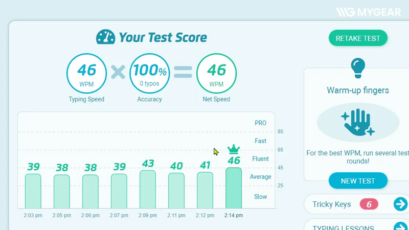 Ratatype cung cấp bài học và bài kiểm tra tốc độ gõ 10 ngón theo WPM. Người dùng có thể tạo nhóm để cùng luyện tập và so sánh kết quả. Giao diện thân thiện, dễ sử dụng. Ratatype phù hợp cho cả người mới và người muốn luyện gõ chuyên sâu.